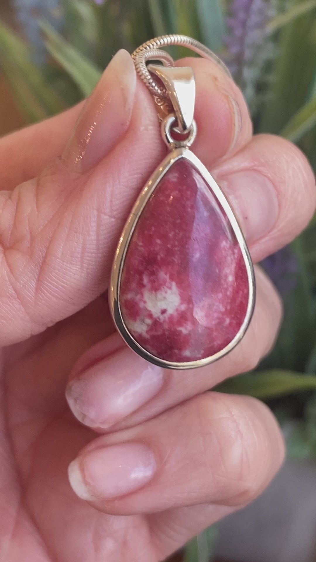 Thulite Pendant set in .925 sterling silver. A vibrant pink thulite stone hailing from Norway. Original deposit Thulite.