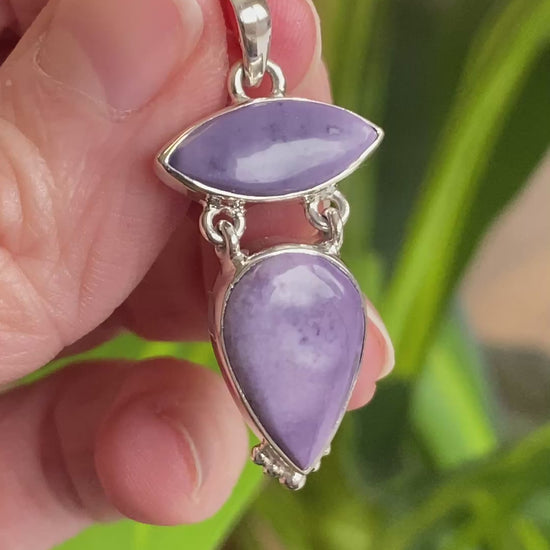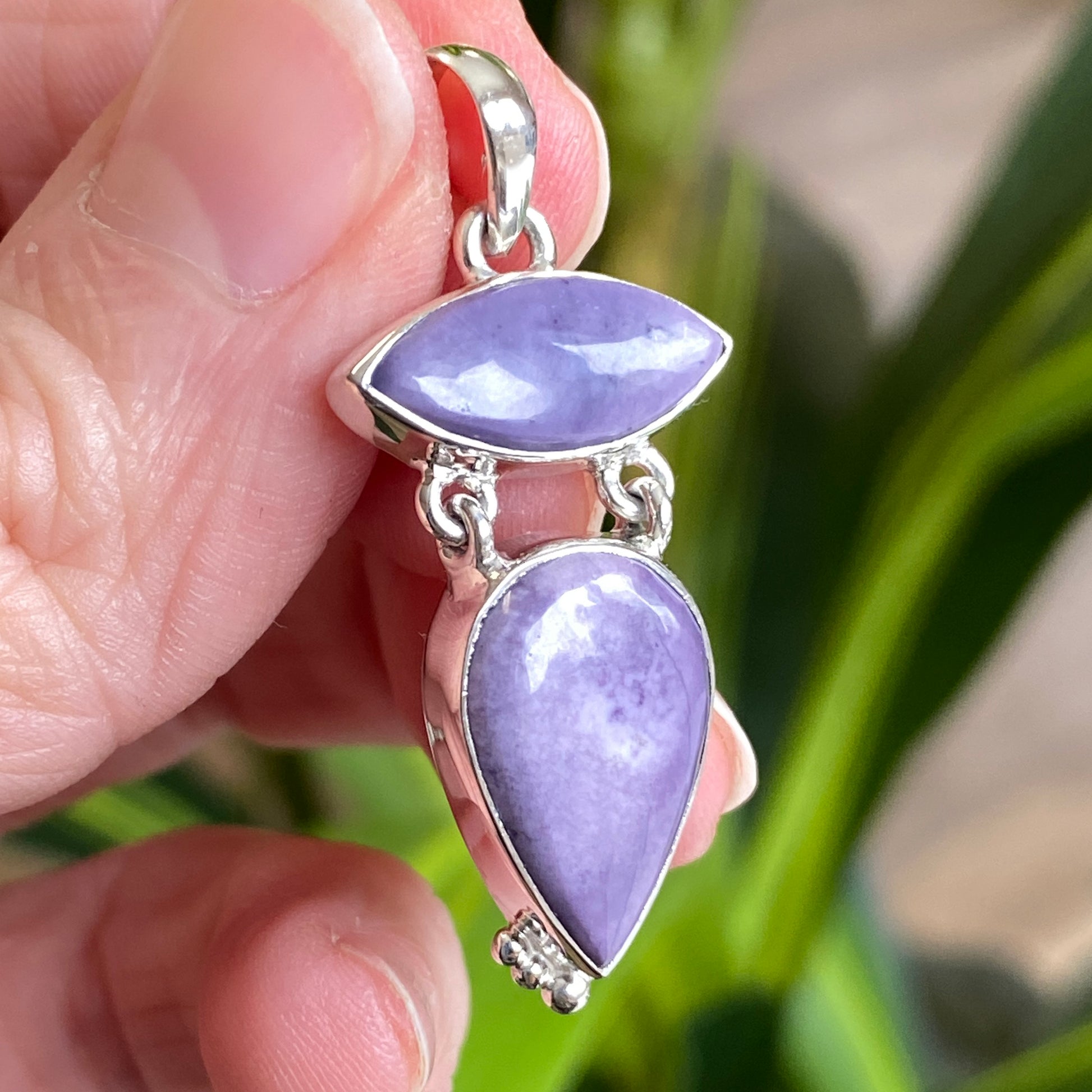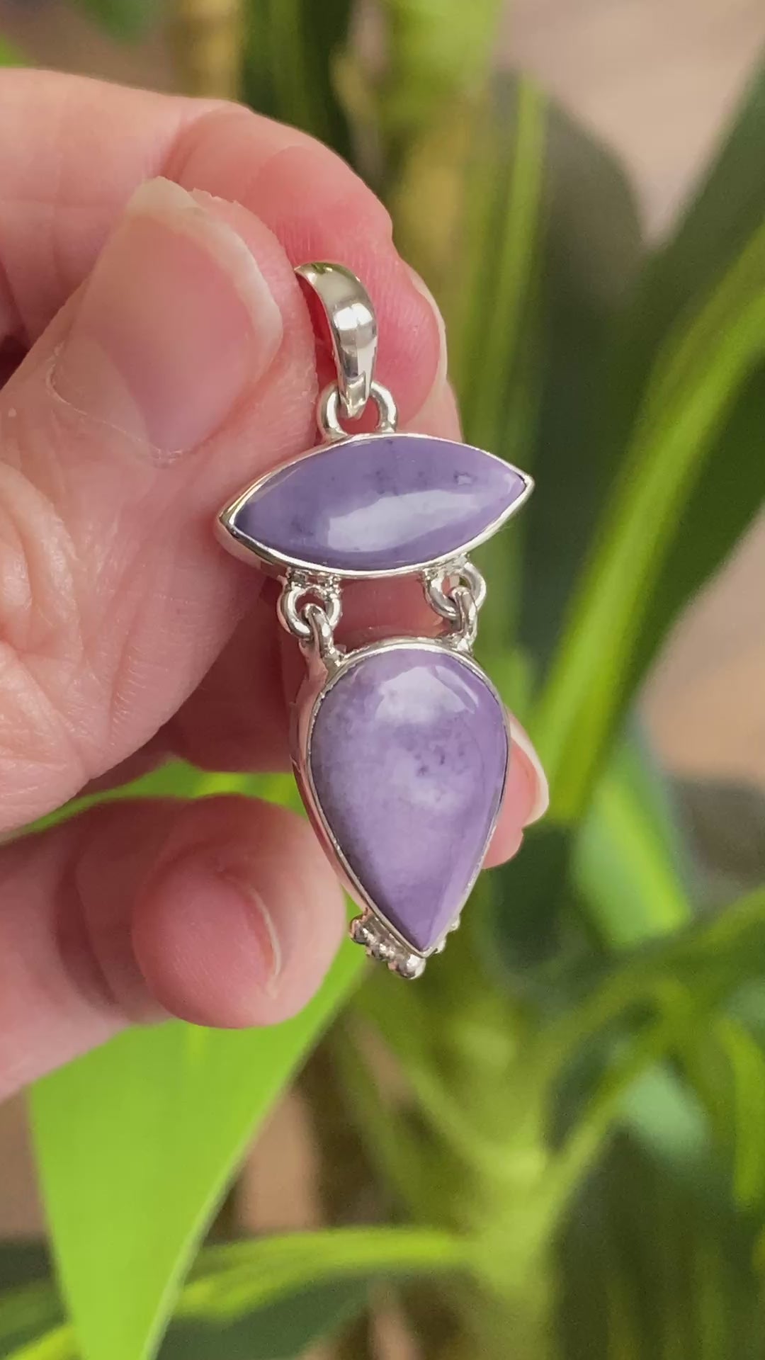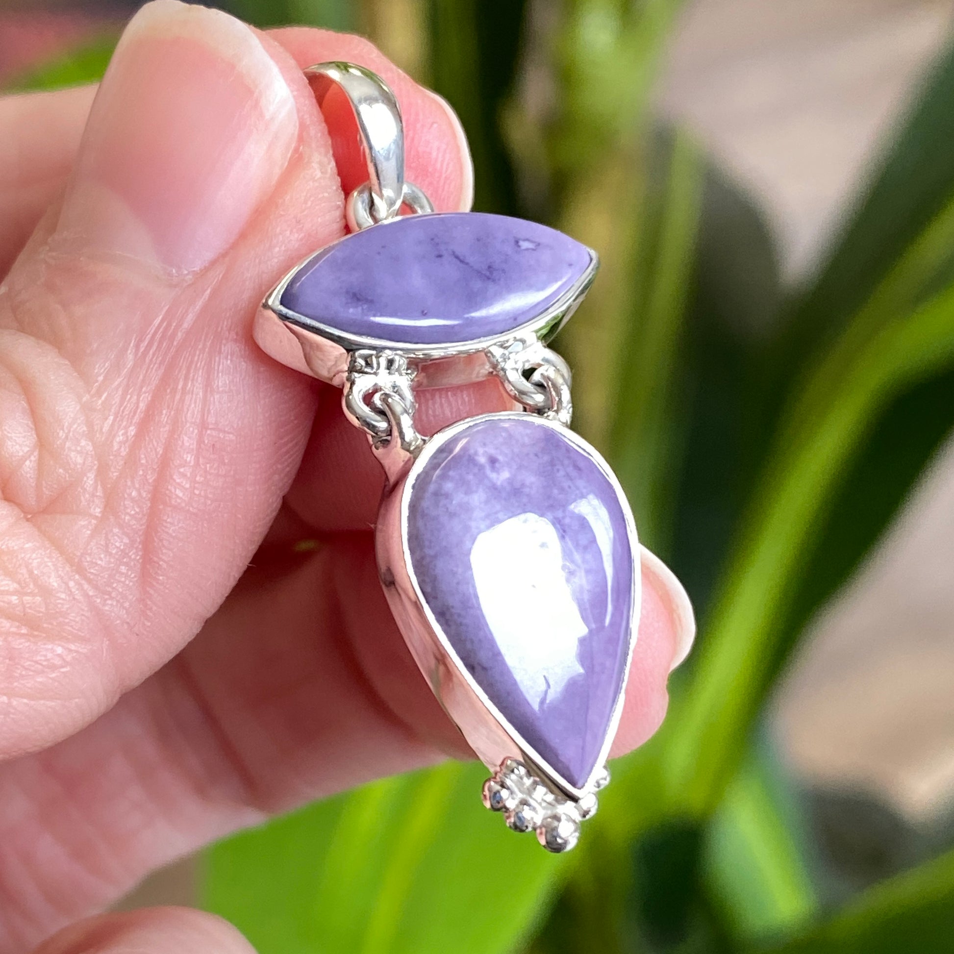 You will receive the exact Tiffany Stone pendant shown. A lovely pair of natural Tiffany stones set in .925 sterling silver. From the Tucson Gem Show 2026. Tiffany Stone is associated with intuition, spiritual awakening, and emotional healing. It resonates strongly with the third eye and crown chakras, enhancing psychic abilities, intuition, and inner wisdom. Helps clear energetic blockages, promoting emotional release and personal transformation. Highly energetic, it encourages creativity, passion, and deeper spiritual connections.