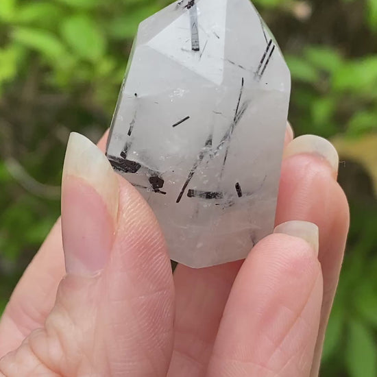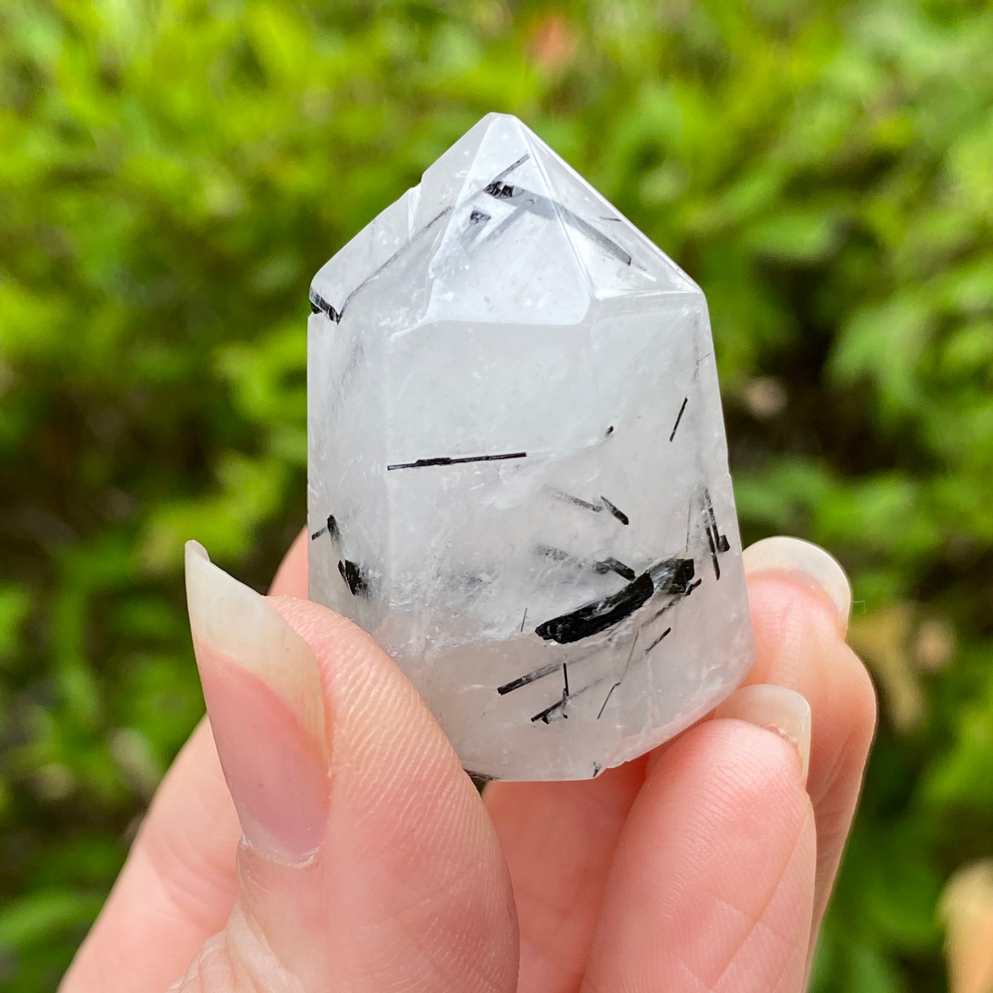 This is a lovely, higher quality Tourmalated Quartz generator tower with clean, transparent Quartz and defined inclusions of Black Tourmaline. Hand cut to a six sided generator point. You will receive the exact Tourmalated Quartz point shown. A powerful mix of protective Black Tourmaline and all-healing Quartz, Tourmalated Quartz is a master at purging negative energy and balancing yin and yang energies throughout the body. Quartz amplifies and enhances the detoxifying powers of Black Tourmaline while energizing the spirit and physical body.
