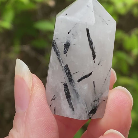 This is a lovely, higher quality Tourmalated Quartz generator tower with clean, transparent Quartz and defined inclusions of Black Tourmaline. Hand cut to a six sided generator point. You will receive the exact Tourmalated Quartz point shown. A powerful mix of protective Black Tourmaline and all-healing Quartz, Tourmalated Quartz is a master at purging negative energy and balancing yin and yang energies throughout the body. Quartz amplifies and enhances the detoxifying powers of Black Tourmaline while energizing the spirit and physical body.