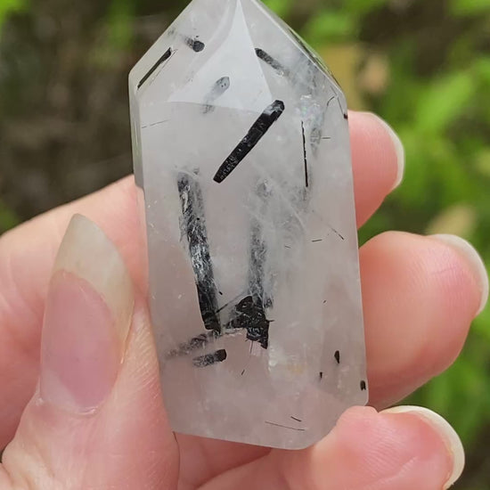 This is a lovely, higher quality Tourmalated Quartz generator tower with clean, transparent Quartz and defined inclusions of Black Tourmaline. Hand cut to a six sided generator point. You will receive the exact Tourmalated Quartz point shown. A powerful mix of protective Black Tourmaline and all-healing Quartz, Tourmalated Quartz is a master at purging negative energy and balancing yin and yang energies throughout the body. Quartz amplifies and enhances the detoxifying powers of Black Tourmaline while energizing the spirit and physical body.