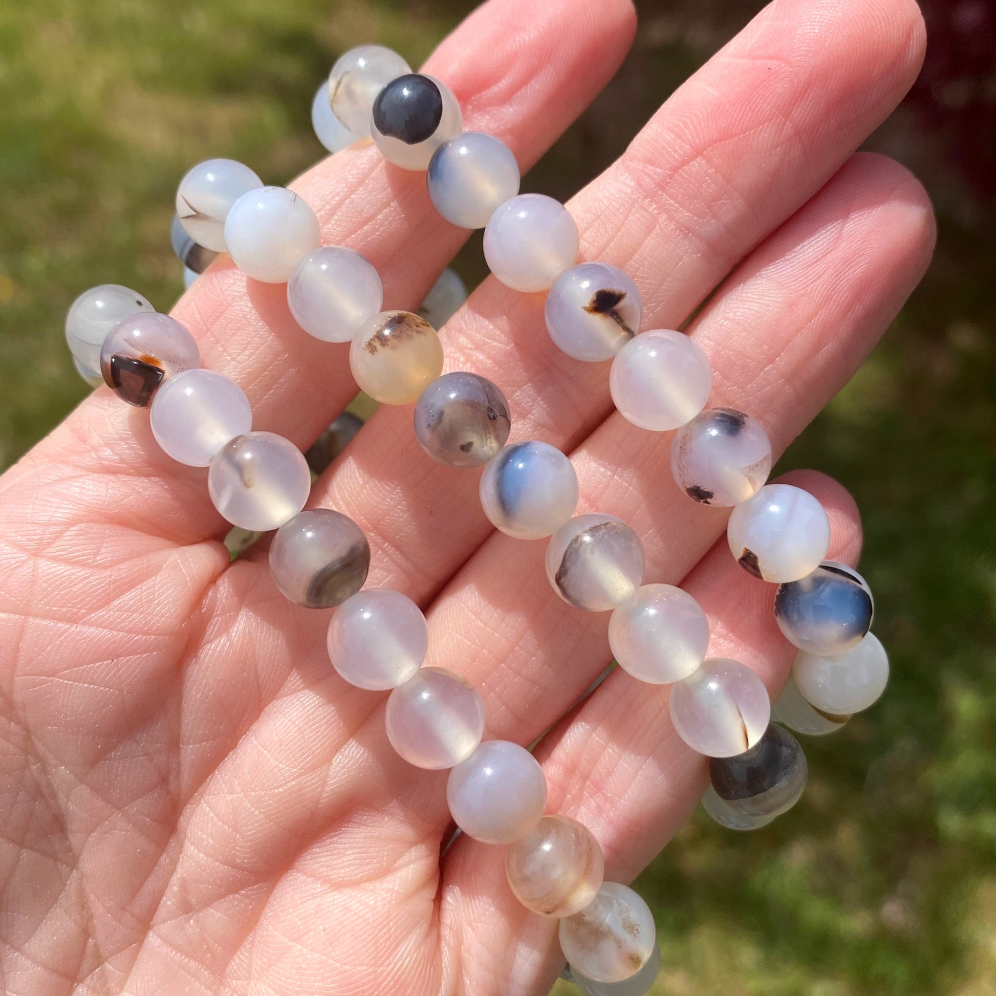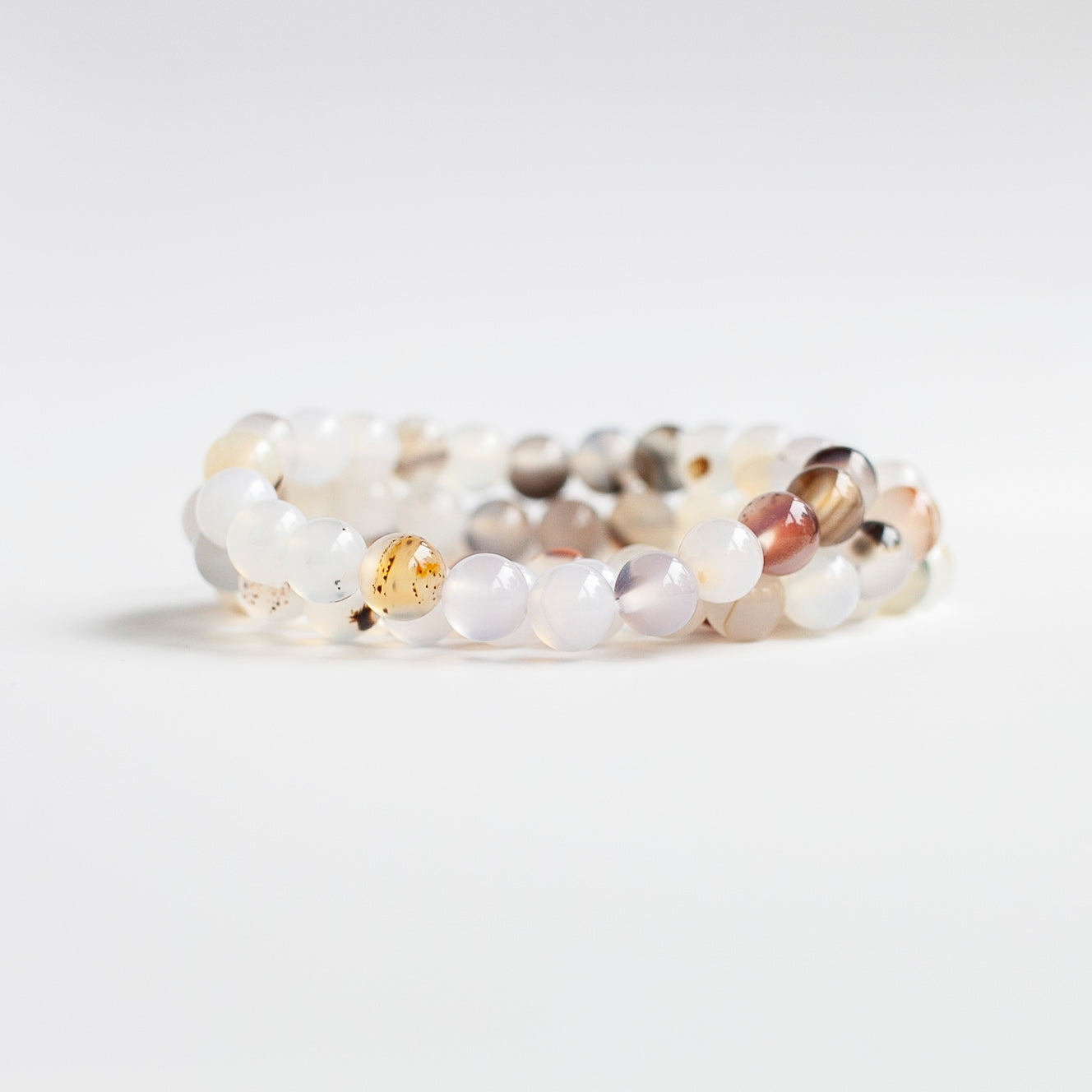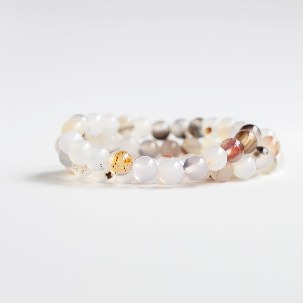 This listing is for one white Agate bead bracelet made with natural 8mm agate beads. The Agate is a lovely, translucent white and each bracelet is unique with its owns inclusions.