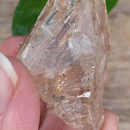 Unique Window Quartz with volcanic clay inclusions. Great luster. Also called Skeletal Quartz or Fenster Quartz for its unusual formation, Window Quartz is a stone of self-discovery, spiritual growth, overcoming obstacles, and determination. You will receive the exact Window Quartz shown.